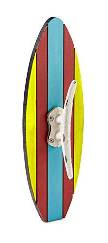 - RUGGED CONSTRUCTION. The base is expertly crafted out of wood, shaped like a surfboard to appeal to those who love the sea. Meanwhile, the rustic coat hook is a genuine boat cleat made of solid metal to provide long-term strength and service for years to come.