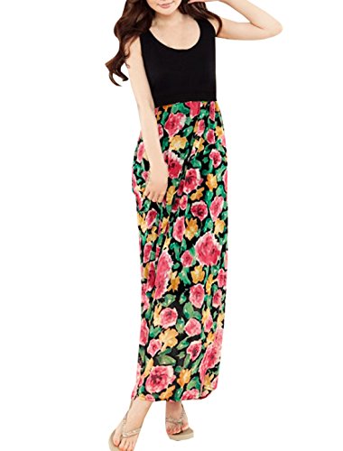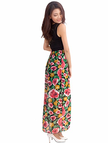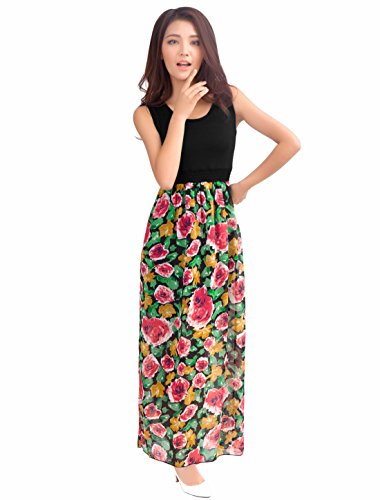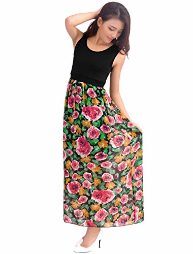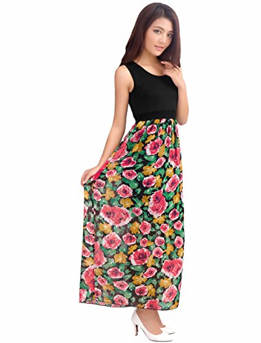 Title : Allegra K Women Scoop Neck Sleeveless Floral Chiffon Maxi Dress S Black
