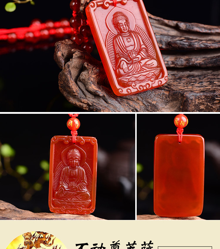 开光红玛瑙不动尊菩萨吊坠生肖属鸡守护神不动明王本命佛项链男女