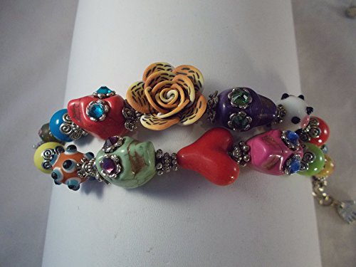 -. Title : Chunky Day of the Dead Bracelet with Howlite Turquoise Sugar Skull, Lampwork Beads and Swarovski Crystal