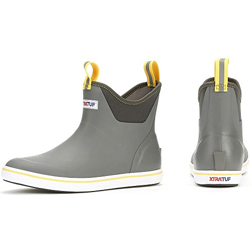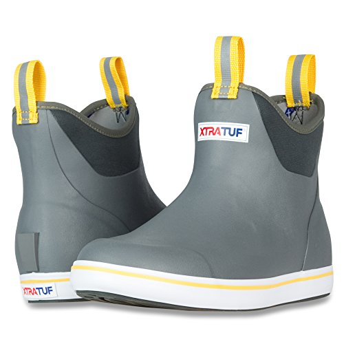 Studio : Xtratuf Publisher : Xtratuf Binding : Tools Home Improvement Product Description The XtraTuf Ankle Deck Boot is a 6" fishing deck full-rubber boot crafted specifically for offshore anglers. Anglers are athletes and like any athlete they need the best footwear to help them perform at a high level. We've created a lightweight design with the same XtraTuf slip-resistant Chevron outsole found in our Legacy boots. The performance ankle deck boot is the perfect boot for any on the water athlete looking for protection with slip-on-and-go styling.Features:? 100% Waterproof? XPRESSCOOL Moister Wicking Lining? Easy-On Rubber Grips? Slip-Resistant Chevron Outsole? Non-Marking Outsole? Sizes and colors available as displayed 0