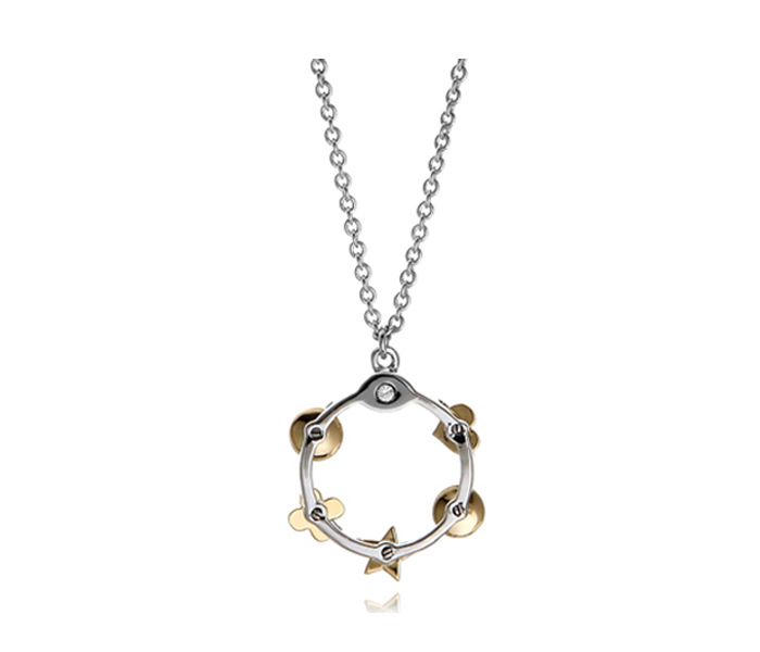 ・サイズ:チェーン45cm、モチーフ1.7×1.7cm・素材:brass・メーカー:COTTINY***タンバリンデザインに、ハート&お花&星さんモチーフが付いて   さり気ない可愛らしさが光るネックレス!   シンプル服にもよく似合うおしゃれアイテム***