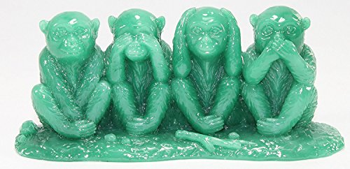 Feng Shui Green See No Evil, Hear No Evil, Speak No Evil Monkey 4 Wise Monkeys Figurine Statue Wealth Lucky Figurine Home Decor Gift US Seller