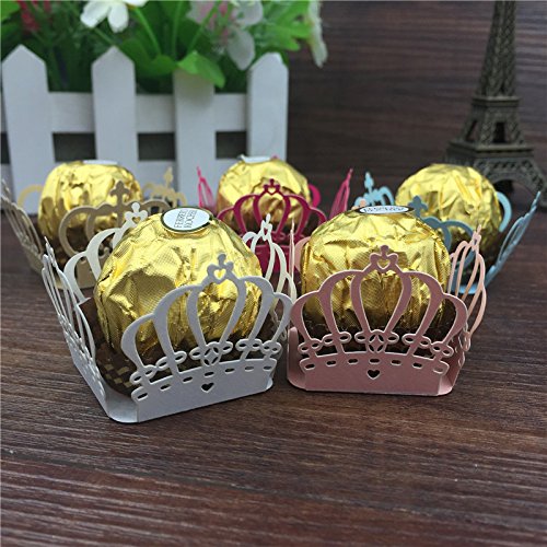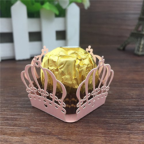 50pcs Crown Prince Paper Candy Bar Chocolate Packaging Bar Laser Cut Birtday Decoration Kids Party Supplies Wedding Decoration by Sopeace (Pink)