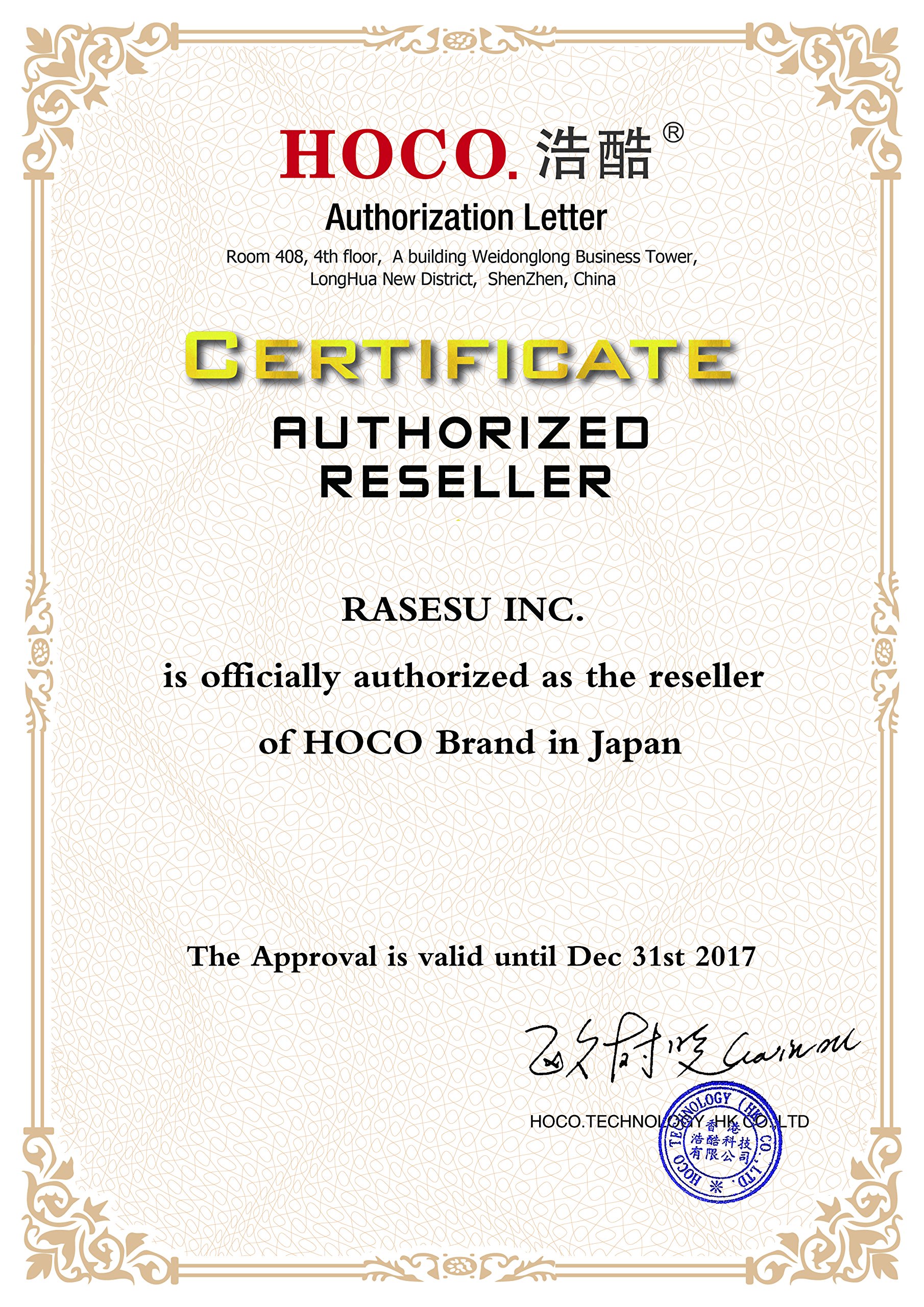 ● The content of this product page conforms to the JAN code product of HOCO authorized agent rasesu Store (Co., Ltd.).