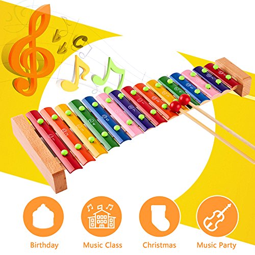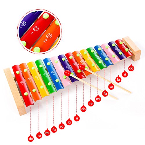 ACCURATE TUNING-This musical xylophone designs 15 multi-color metal tone bars for a wider note range, the special buffer sponge interlayer and plastic rivets creates a pleasant clear in-tune sound.
