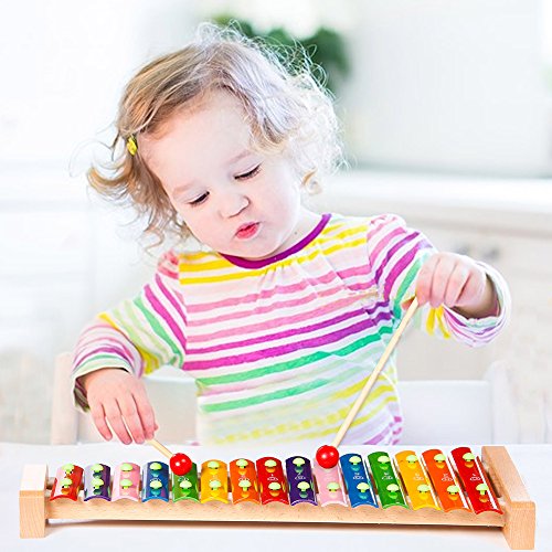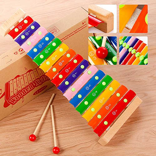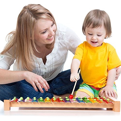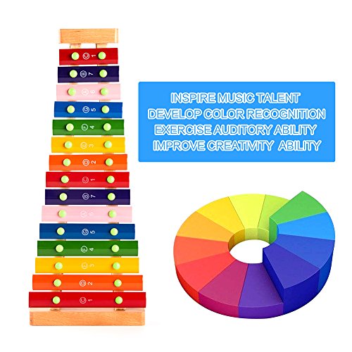 --Everyone can benefits a lot from this educational musical instrument. Toddlers can develop color recognition, motor skills, auditory ability while playing, Older kids can inspire music talent, play elegant melody and develop creativity, even the parents and grandparents would enjoy and play with it.