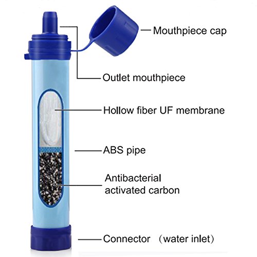 GoFresh Bottle Portable Water Filter Straw and Survival Kit or Emergency Camping 2-Stage Integrated Camping Hiking Travel Water Filter 0.01 Micron