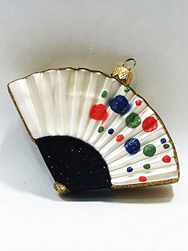 -. Feature : Just like handmade fans in Asia, our Fan ornament is embellished with a black tassel, hanging from the top. / An original design by Ornaments to Remember. / A blown-glass ornament handcrafted by EUROPEAN artisans. / Matching kimono, geta, lantern, and braided knot available. / Fan ornament height: 3-1/2 inches.