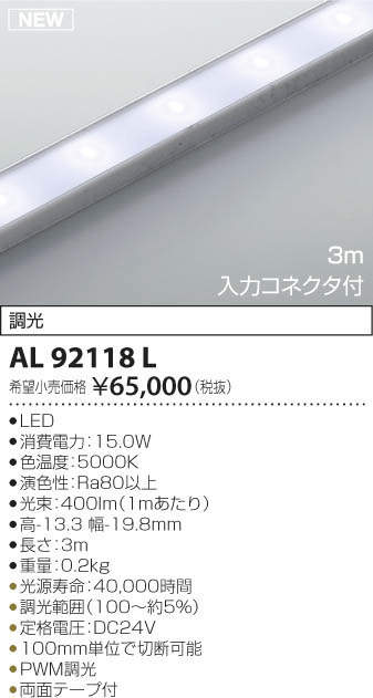 ●光束:400 lm(1mあたり)
