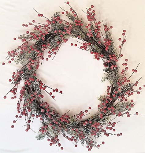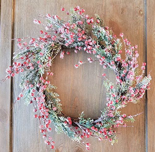 Holiday Christmas Winter Door Wreath Berry Frosted Iced 16"