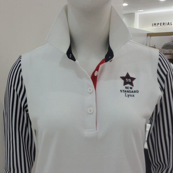 기본카라티에 소매를스트라이프무늬를 넣으므로깔끔하며 이중으로입은효과를주는 카라티셔츠입니다