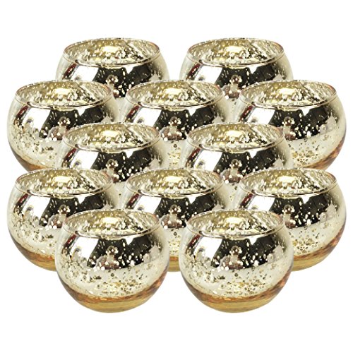 Just Artifacts Round Mercury Glass Votive Candle Holders 2"H Speckled Gold (Set of 12) - Mercury Glass Votive Candle Holders for Weddings and Home Décor