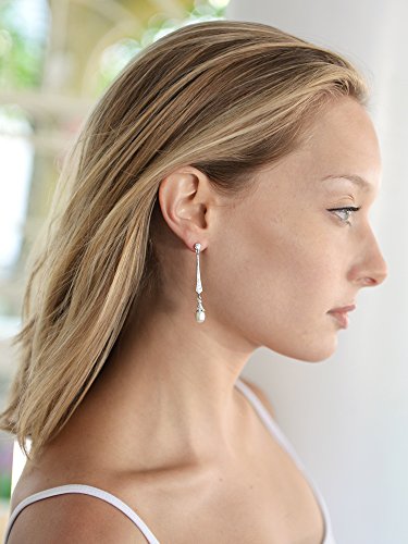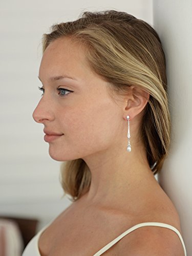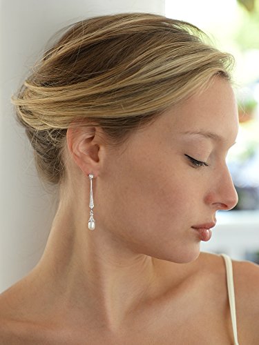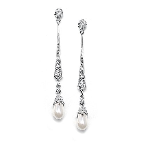 -. Title : Mariell Slender Cubic Zirconia Vintage Dangle Earrings with Freshwater Pearl Drops for Brides or Weddings