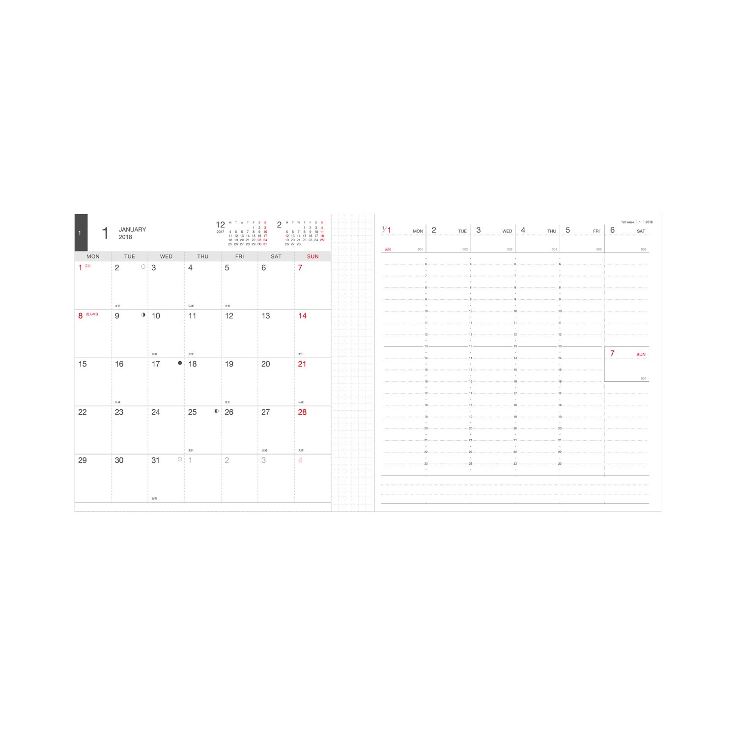 Weekly pages are available in two types that you can choose according to your preferences and usage.