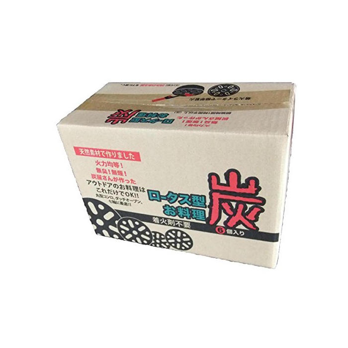 원본상품명: 着火不要 ハイブリッド備長BBQ炭〔ロタス型 直12㎝ 6個入り〕