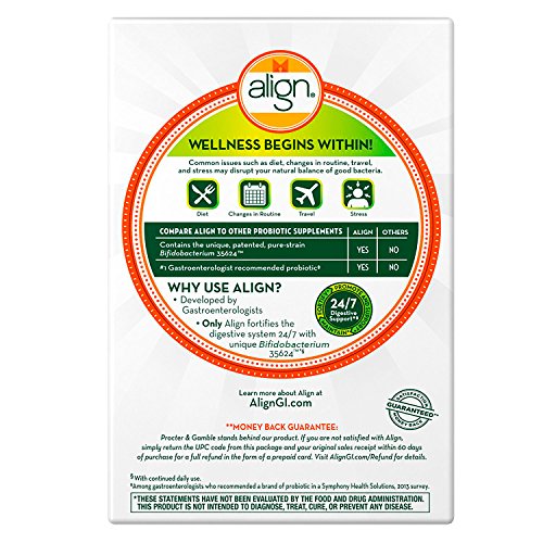 Keep your digestive system in sync, so you can continue doing the things you love to do. Align is a daily dietary supplement that fortifies your digestive system with healthy bacteria 24/7* with continued daily use. Only Align contains the unique, patented, pure-strain Bifidobacterium 35624TM. Align can help fortify your digestive system and help maintain its natural balance*. Chances are, you’ve considered several approaches to help support your digestive health, like changing your diet, exercising, or stress reduction. In addition to these behaviors, some people are taking a daily probiotic supplement, such as Align.Feature