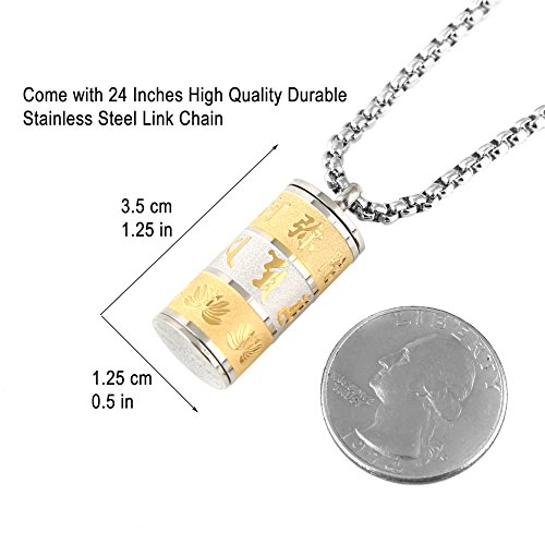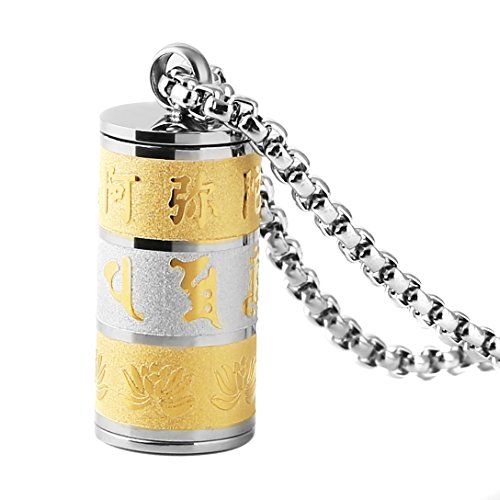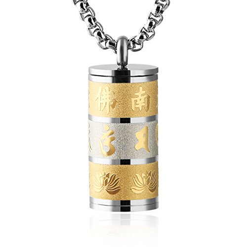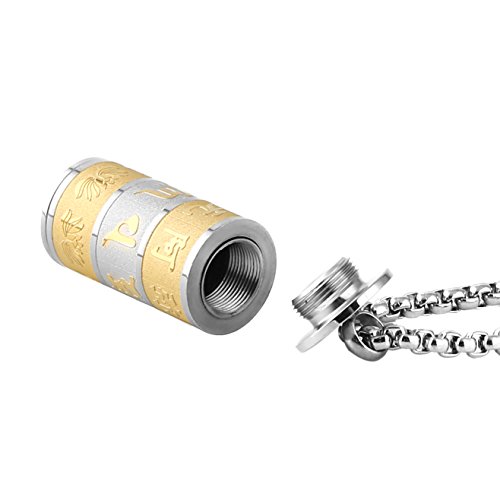 HZMAN Stainless Steel Buddhist Om Mani Padme Hum Prayer Wheel Mantra Bottle Keepsake Urn Necklace Memorial Jewelry