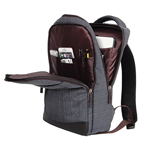 -. Feature : Large multi-compartment design with a padded sleeve for laptops,holds up to 14-inch notebook computers / Expansive organisational compartments (laptop, ipad, pens, keys, mobile phone, business card) / Adjustable padded shoulder straps make the backpack comfortable to wear / Material:Linen / External dimensions: 11.42 x 3.94 x 16.14 inches (LxWxH)