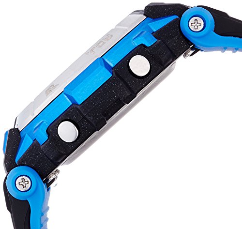 -. Feature : Sport-minded watch with silver-tone bezel featuring chronograph with alarm, lap time, dual time, and backlight with three-second delay / Additional functions include: LCD display with day, date, time, and seconds / Black resin case with acrylic dial window / Quartz movement with digital display / Textured-resin strap with buckle closure / Water resistant to 100 m (330 ft)