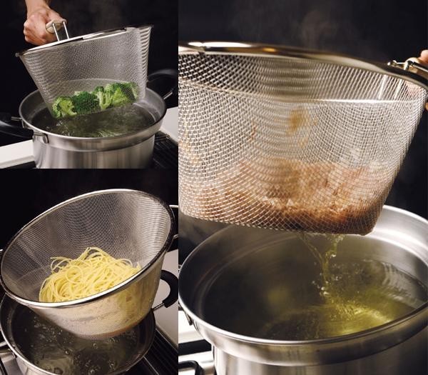 煮る、茹でる、だしをとる、煮込む。いろんな調理に使えるお鍋とザルです。 |
