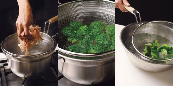 | 煮る、茹でる、だしをとる、煮込む。いろんな調理に使えるお鍋とザルです。 |