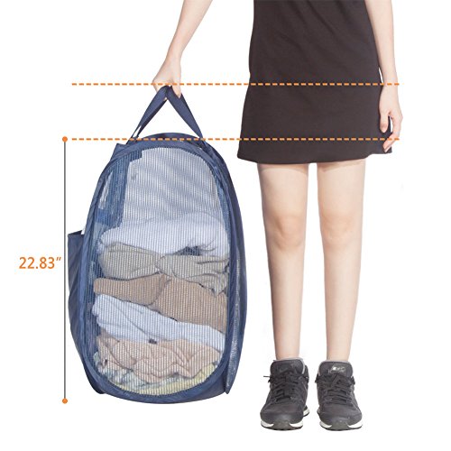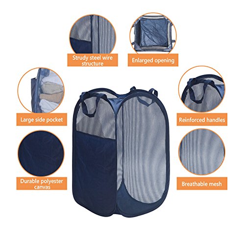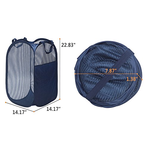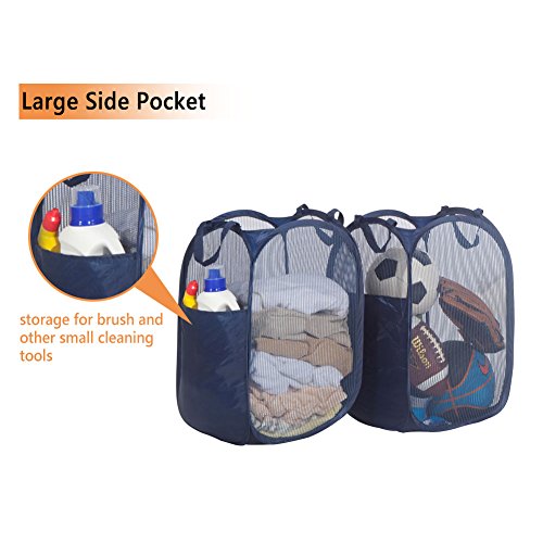 StorageManiac Mesh Pop-Up Laundry Hamper with Side Pocket and Reinforced Handles, 2-Pack, Dark Blue