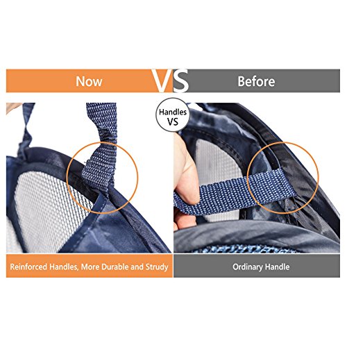 - REINFORCED HANDLES & LARGER OPENING - Handles on BOTH sides making hamper easy to transport. Each handle is reinforced and attached to the hamper with extra-strength stitching so the hamper can handle a heavy load; The LARGER top opening for easy use