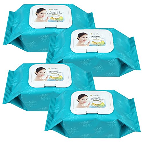 -. Feature : Pack of 4 (240 total tissues) / Deep cleans down to the pore in one step / Moistruzes with Argan Oil and Vitamin E / Refreshes skin and leaves no residue / Hypoallergenic and oil free. For all skin types.