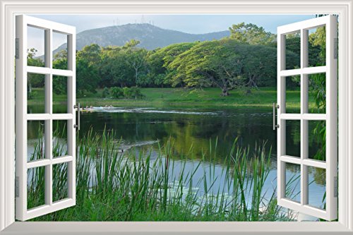 -. Binding : Kitchen -. Brand : wall26 -. ProductGroup : Home -. ProductTypeName : HOME -. Title : Peaceful Lake with Green Mountain and Trees Open Window Mural Wall Sticker -