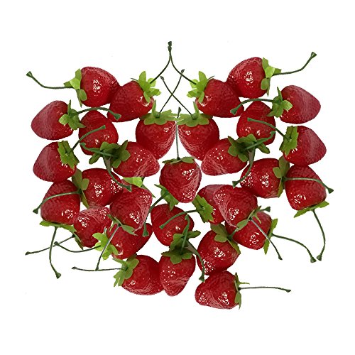 Jing-Rise 30pcs Artificial Strawberries Fake Fruit Lifelike Simulation Small Red Strawberry Set for Home Kitchen Shop Decoration