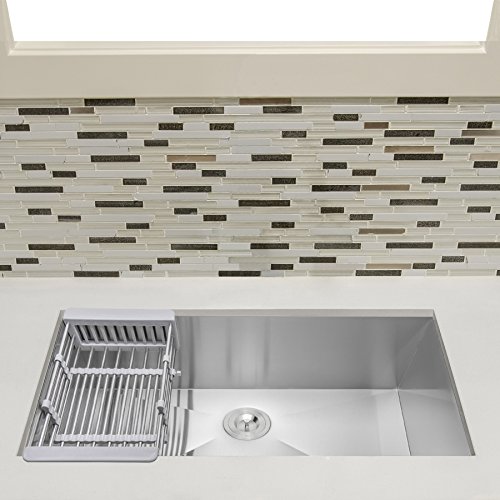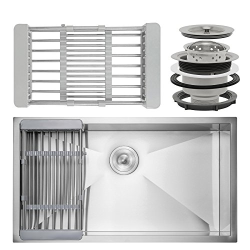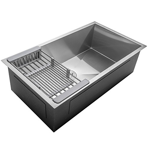 Firebird 33" x 22" x 9" Under Mount Handmade Stainless Steel Single Bowl Kitchen Sink w/ Drain Strainer Kit Adjustable Tray