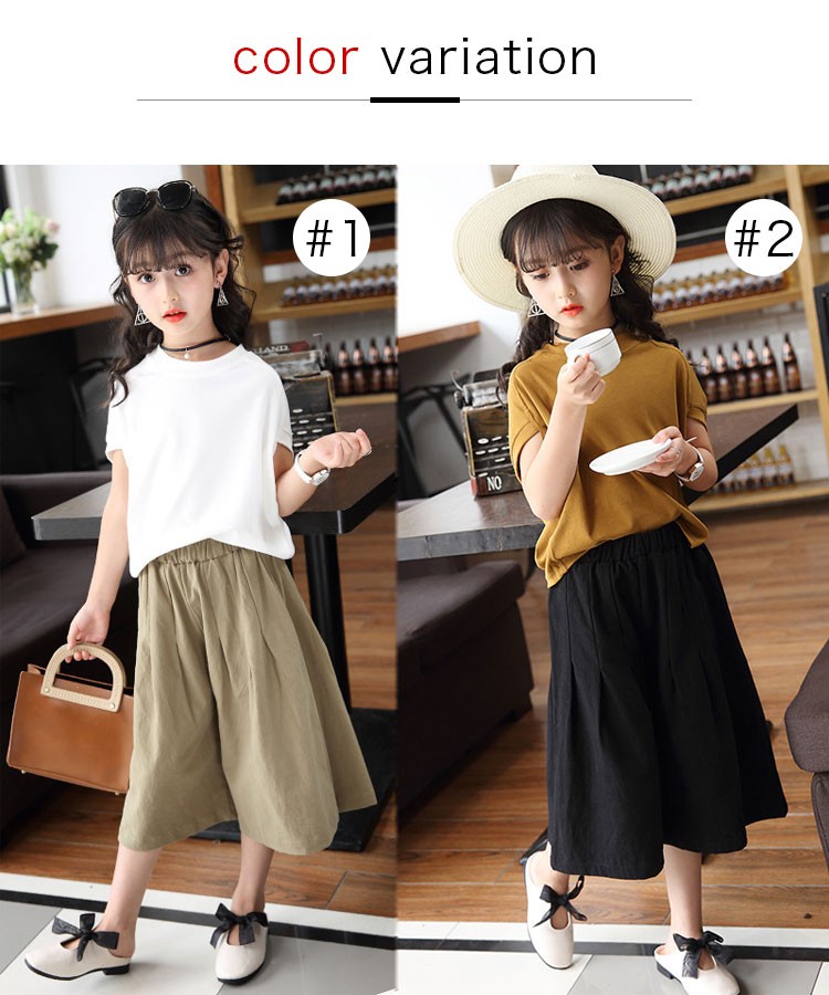 【製品仕様】■商品名子供服 セットアップ 女の子 夏 半袖 韓国子供服 キッズ 可愛い Tシャツ ワイドパンツ ドルマンスリーブ 無地■商品説明大人っぽい無地Tシャツとワイドパンツのお得なセット。大人サイズもあるから、姉妹・ママとお揃いも。着回しも色々だから、この夏、持っていて間違いなしの1枚。■サイズ/寸法110 120 130 140 150 160 170■素材/材質トップス:コットン95%、ポリウレタン5%ボトムス:綿麻■色/カラー01ホワイト×カーキ02モカ×ブラック03ホワイト×ブラック【検索キーワード】子供服 セットアップ 女の子 夏 半袖 韓国子供服 キッズ 親子ペアルック お揃い 可愛い Tシャツ ワイドパンツ ドルマンスリーブ 無地 上下セット ガールズ 韓国 ガチョウ 半袖Tシャツ ズボン ボトムス 涼しい おしゃれ オシャレ お出かけ