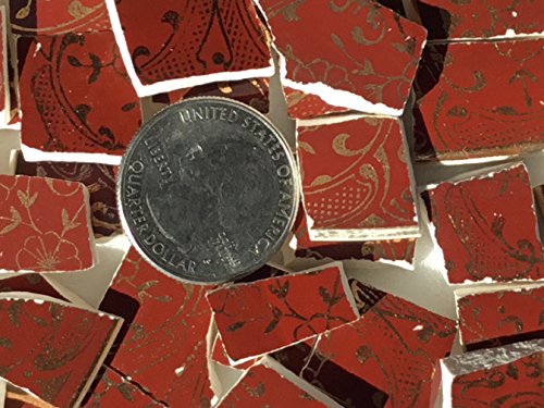 50+ Mosaic Tiles ~ China / Ceramic / Stoneware / Broken Dishes & Plate Pieces ~ Art Supply Tile Made for Mosaics & Craft ~ Deep Red China with Gold Floral Decoration (T#397)