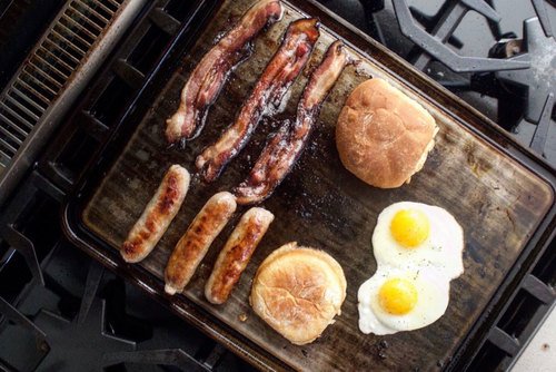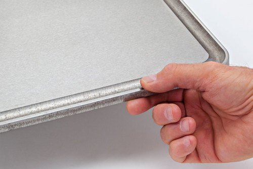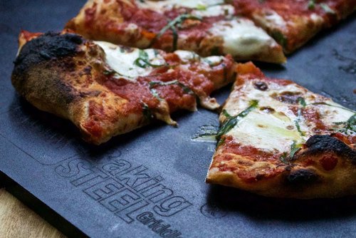 The Baking Steel Griddle combines the Original Baking Steel with a stove top Griddle. The Griddle is a 18"x14"x3/8" slab of steel that functions exactly like the Original Baking Steel on one side with an additional polished service and grease channel on the opposite side. This versatile product can go right in your oven to bake the perfect pizza on the textured side, serving as a traditional Baking Steel. When flipped over, the Griddle can be placed directly on your stove top to cook a variety of dishes from eggs, to burgers, to English muffins. The Griddle is a 18"x14"x3/8" a slab of steel that functions exactly like the Original Baking Steel on one side with an additional polished service and grease channel on the other side. It will turn your standard home oven into an industrial powerhouse by reaching temperatures higher than 700 degrees Fahrenheit, perfect for searing and baking, but can still handle lower temperatures for more delicate recipes, such as eggs and pancakes on the stove. Traditional cookware, such as a pizza stone or an aluminum griddle heat up just as quickly as steel, but do not conduct heat as efficiently. Baking Steel differentiates from other kitchen products due to its ability to distribute heat more evenly, providing an overall hotter surface. Thick-gauge steel and high volumetric heat capacity allow the Baking Steel Griddle to contain unparalleled amounts of energy long after the heat-source is turned off. The Baking Steel Griddle is going to change the way people cook at home. Proudly manufactured in the USA.Feature
