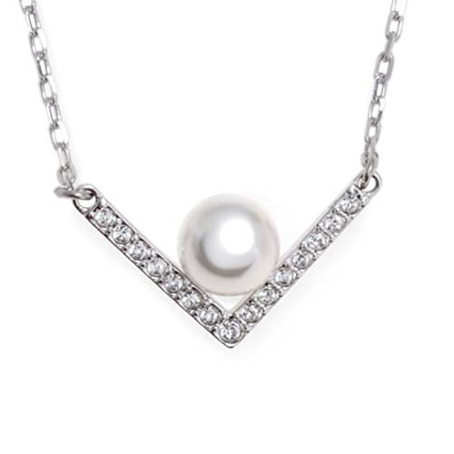 [스와로브스키] SWAROVSKI rhodium 코팅 펄 V자 Edify Small 목걸이【병행수입품】 5213361