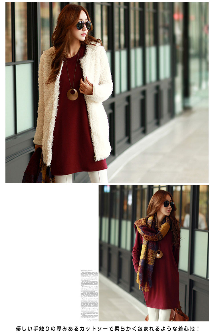 | 裾に向かって微かに広がるAライン風が女性らしい可愛さを引き立てる!身幅もゆったりするので気になるおなか周りやヒップも素敵にカバーしてスタイルアップ♪優しい手触りの厚みあるカットソーで柔らかく包まれるような着心地!その上さりげなく裏起毛!だから寒い日にも安心のぬくもりを感じられます♪ | |