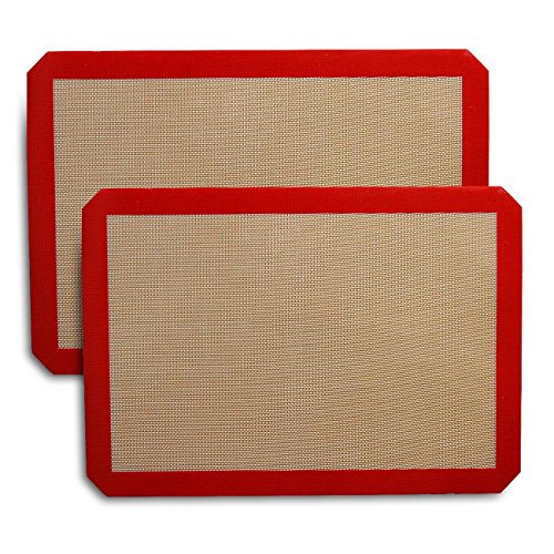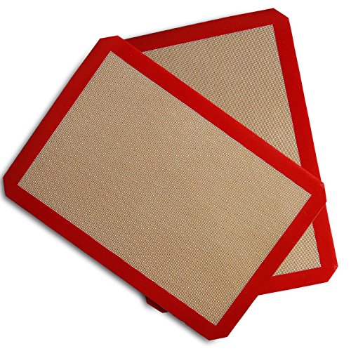 Silicone Baking Mat - Set of 2 Half Sheets - Non Stick Silicon Liner for Bake Pans & Rolling (16.5" x 11.6")