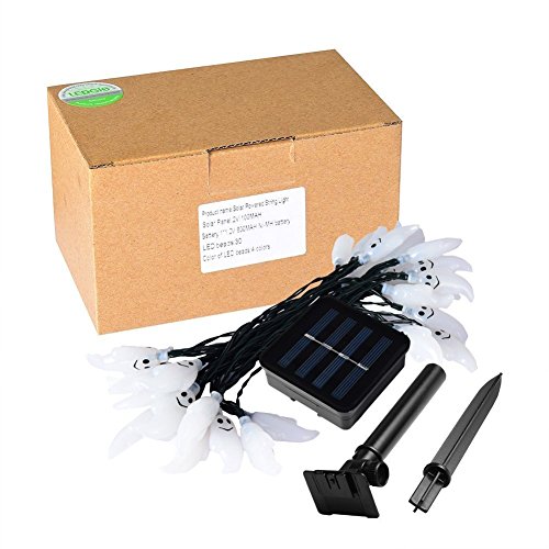 LEDGLE Solar String Light Waterproof Patio Lights Perfect Decoration Light for Halloween, Ghost Shape, 30 LED Lights, 8 Lighting Modes, Warm White, Easy to Install