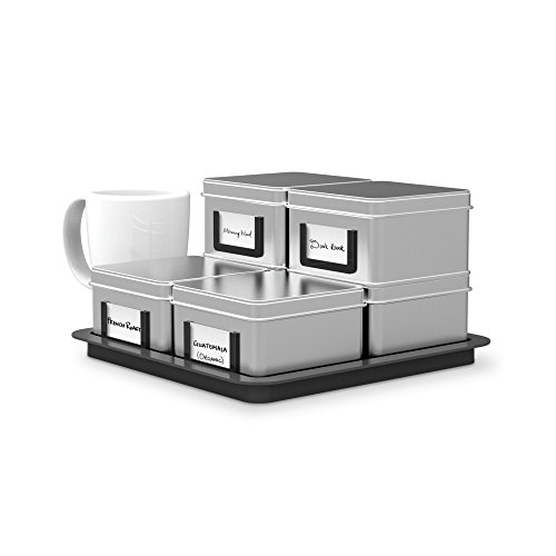 Mind Reader 7-Piece 'Stax' loose leaf Tea/Coffee canisters with Tray, Silver