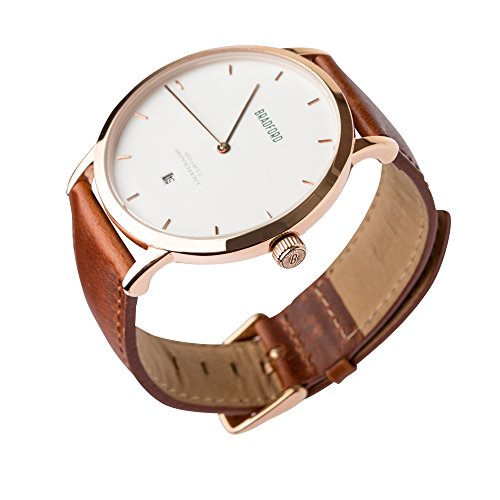 - Available in Polished Rose Gold/Black Leather, Polished Rose Gold/Brown Leather, Polished Steel/Black Leather, Polished Steel/Brown Leather
