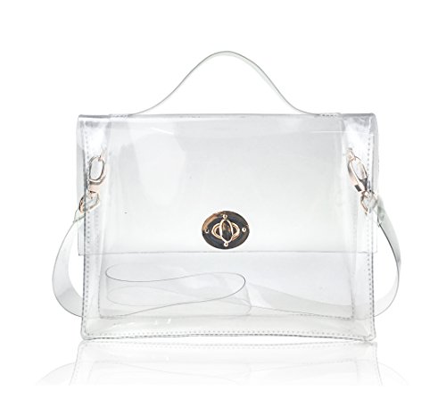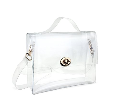 Product Description Hoxis 2016 High Fashion PVC Transparent Satchel Summer Beach Cross Body Clearly Messenger Bag @@YOUR PERFECT SUMMER PURSE Structured plastic in transparent. Gold-tone hardware. Foldover flap at main compartment with two push-clasp closure. Removable plastic shoulder strap. Clear exterior face and foldover flap revealing interior. Approx. 10" length, 8" width, 3" depth. These transparent handbag might help you keep things a little more neatly since the bag contents are on display for the world to see. How do you feel about transparent handbags, would you try this trend? Our commitment is to offering the latest trends in purses and other first-rate lady bags. Our range of products are for professional or casual use, and we have products for all ages and professions. You will always find that our selection incorporates great design, and quality construction. *Fulfilled by 'Hoxis', We offer a Standard Delivery service which usually takes 7 to 15 working days for your goods to arrive, from receipt of your Order. However delays are occasionally inevitable due to unforeseen factors. The delivery charges are applied and there is one delivery charge per Item. Hoxis® delivery charges are $3.99 per item. * Official Hoxis® product made and sold exclusively by Hoxis, All products includes 'Hoxis' Label and Tags, US Trademark Registration Code: 86580316 *Package: Individual Polybag or Box Packed. *Due to monitor variations colors may appear slightly different. 0
