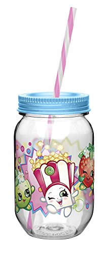 Studio : Zak Designs Publisher : Zak Designs Binding : Kitchen Product Description Have fun and stay hydrated while on the move with a nostalgic and durable Mason Jar Tumbler by Zak! designs. This canning jar tumbler, featuring the fun characters from Shopkins, definitely puts the fun in functional. Designed with a wide mouth opening and screw on lid to accommodate ice cubes while still preventing most spills. The straw is wide enough to easily enjoy real fruit smoothies and features a stopper to prevent it from falling out. Made of BPA-free, shatter-proof and break-resistant Tritan plastic, this tumbler will last for years to come. No more disposable cups; good for you and good for the environment. 19 oz. capacity, dishwasher safe, but do not microwave. By Zak! designs, making mealtime fun. 0