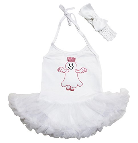 -. Title : Halloween Dress Ghost P.R.Incess White Halter Neck Bodysuit Tutu Set Nb-24m