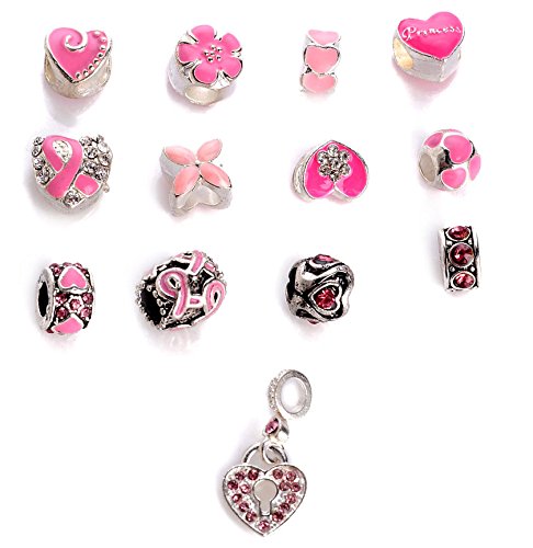 Yeshan 12PCS Antique Silver Plated Bracelet Beads Charms - With a Snake Chain Bracelet free,red color