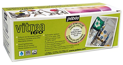 Pebeo 111100 Vitrea 160 Glossy Glass Paint Set, Cardboard Box of 10 Assorted 45-Milliliter Jars