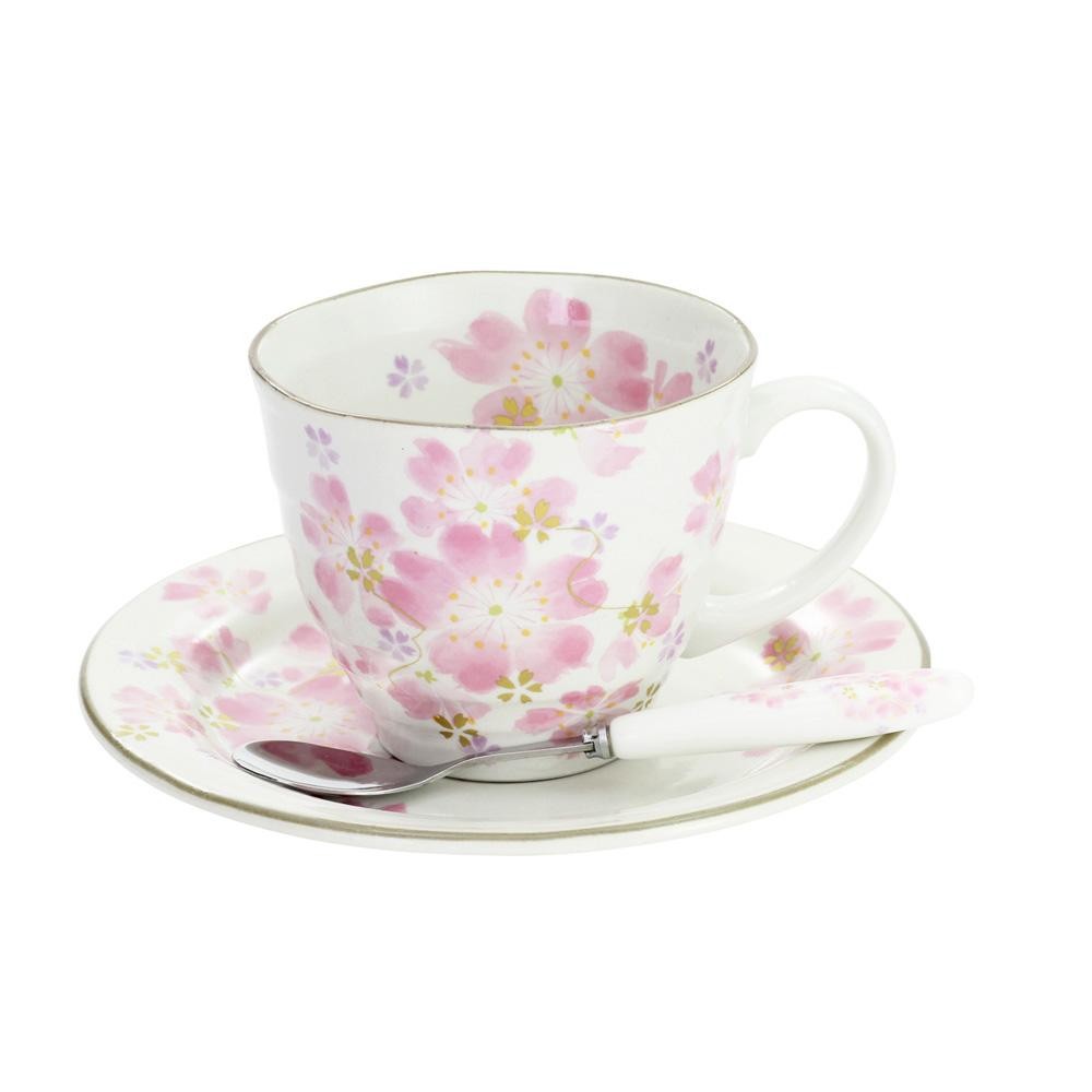 淡い色で上品に仕上げた桜柄のコーヒー碗皿&スプーンのセットです。