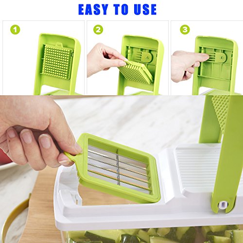AMAZING FEATURES √3 Types of Vegetable Chopper Dicer:4.3x14.2";4.7x4.7";6.7x6.7" √Food container helps to keep all cuts together √EASY TO OPERATE: Chop up vegetables, fruits and more in one simple pushing motion, experience fast and convenient kitchen blade skills. √SAFE AND HEALTHY: BPA, PVC and Phthalate FREE. Food-Safe plastics to keep your food clean and chemical free. √COOK MUCH FASTER: Dramatically reduce your cooking and preparation times by this vegetable slicer food chopper. √DISHWASHER SAFE EASY TO CLEAN: Wash under running water with soap, and a damp cloth, or you can put it into the dishwasher to save your cleaning time. NOTES FOR YOU ★Hand washing recommended for extending the lifetime of the product but it is top rack dishwasher safe. ★When dishwasher, always treat your kitchen equipment with the up most of care.? ★Please hold vegetables down with the safety holder to slide in case getting injured, tiny cleaning tool is behind the container lid pusher Package include:? 3* Chopper?blades 1* Food Container 1*?3in 1 Extra Vegetable?Peeler(gift) ? ? ? ? 0 |