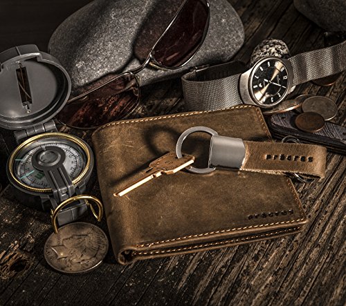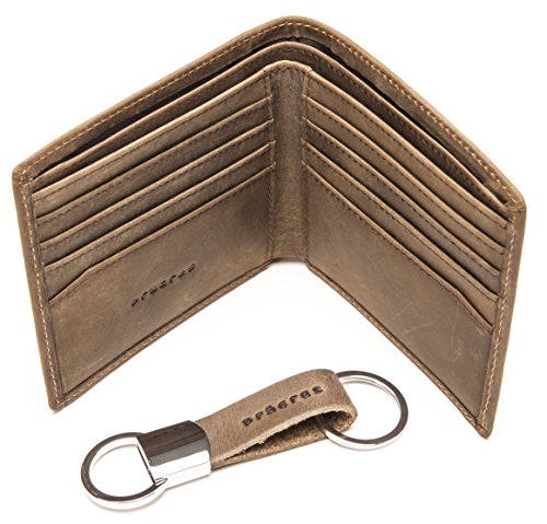 -. Binding : Apparel -. Brand : prägres -. Color : Brown -. Department : mens -. EAN : 0642709352433 -. Feature : ✓ GENUINE LEATHER: Premium Cowhide Leather for a soft luxurious feel and durability. / ✓ NO "BREAK-IN" PERIOD: The leather used to make this bifold wallet is super soft to the touch, and will feel like the wallet you've had for years right out of the box. / ✓ FULL SIZE: 4" x 3/4" x 4 1/2" - 8 card slots, 2 cash compartments, and 2 extra pockets / ✓ BONUS LUXURY KEYCHAIN: Hang your keys in style with the matching spring-loaded leather strap keychain, which comes with a heavy-duty split ring for easy attachment. / ✓ SATISFACTION GUARANTEE: If you don't absolutely love your wallet, return it within 30 days for a full refund. -. PackageQuantity : 1 -. ProductGroup : Apparel -. ProductTypeName : ACCESSORY -. Size : One Size -. Title : Men's Vintage Bifold Wallet & Keychain Set : Genuine Cowhide Leather -. UPC : 642709352433
