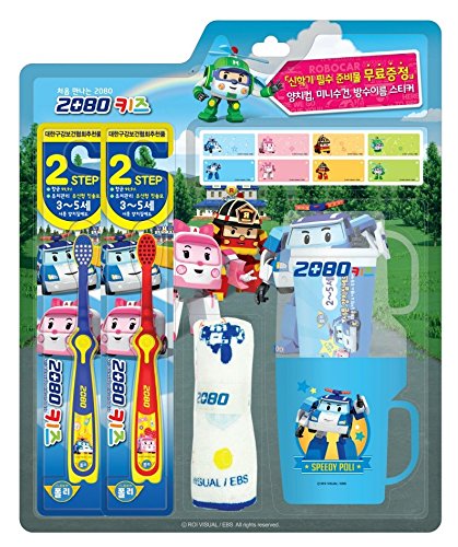 Korea POLI Kids Oral Hygiene Set - Toothbrushes(2 Count), Toothpaste, Mouthwash Rinse Cup & Towel!